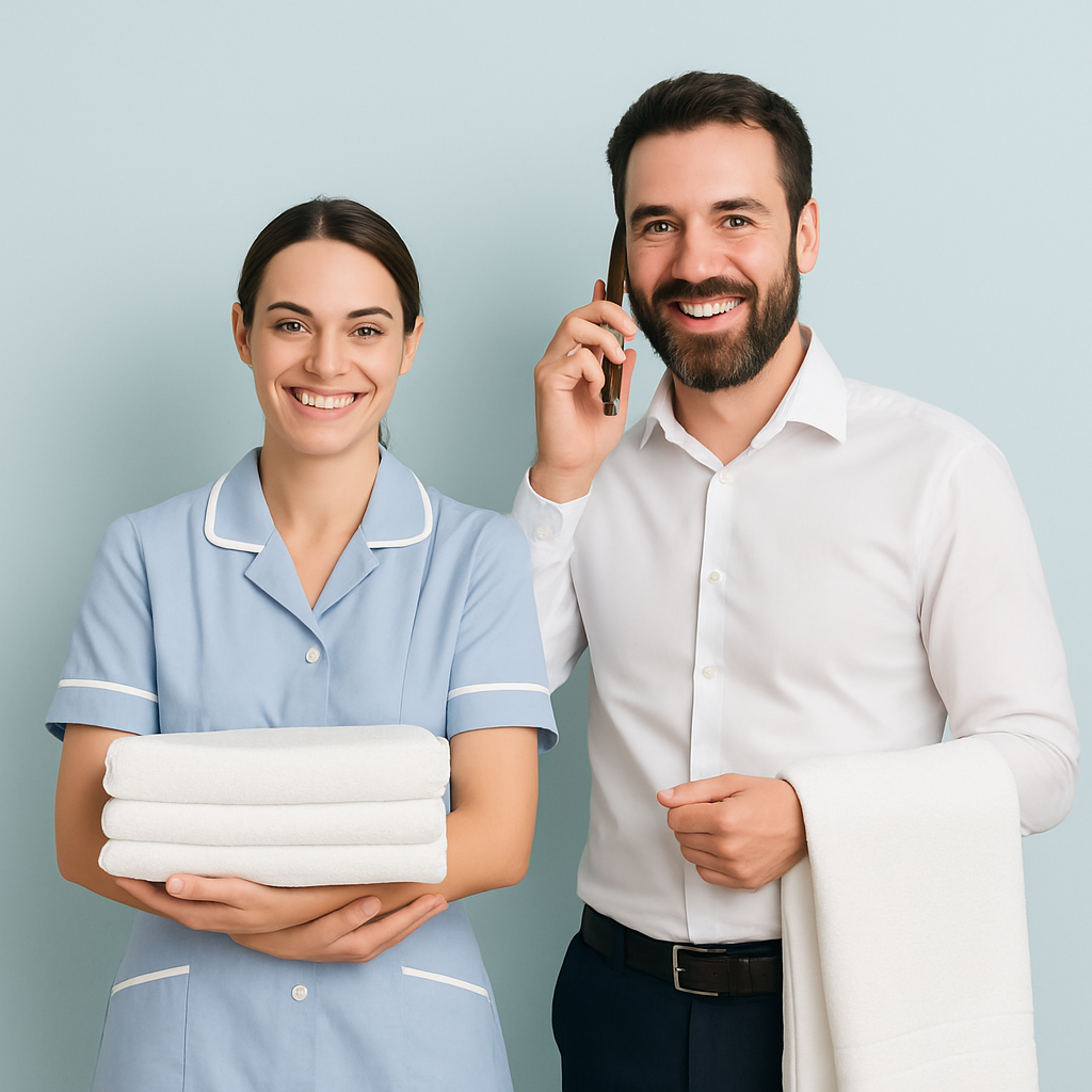 Нашиот тим го сочинуваат обучени и посветени професионалци, кои секојдневно се грижат за брза, сигурна и уредна обработка и испорака на сите видови текстил – од чаршафи и пешкири, до специјализирани хотелски материјали.